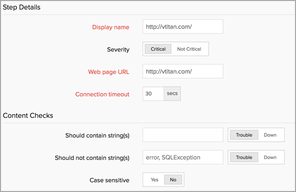 Śledzenie dokładność treści Weryfikuj dokładność treści strony internetowej na każdym etapie transakcji i wykrywaj błędy lub działania hakerów o wiele szybciej. Wystarczy skonfigurować słowa kluczowe, które powinny i nie powinny zawierać strony internetowe („zhakowane przez”, „serwer przeciążony”, „błąd 404” itp.) i otrzymuj powiadomienia natychmiast po wykryciu zmian w treści. |